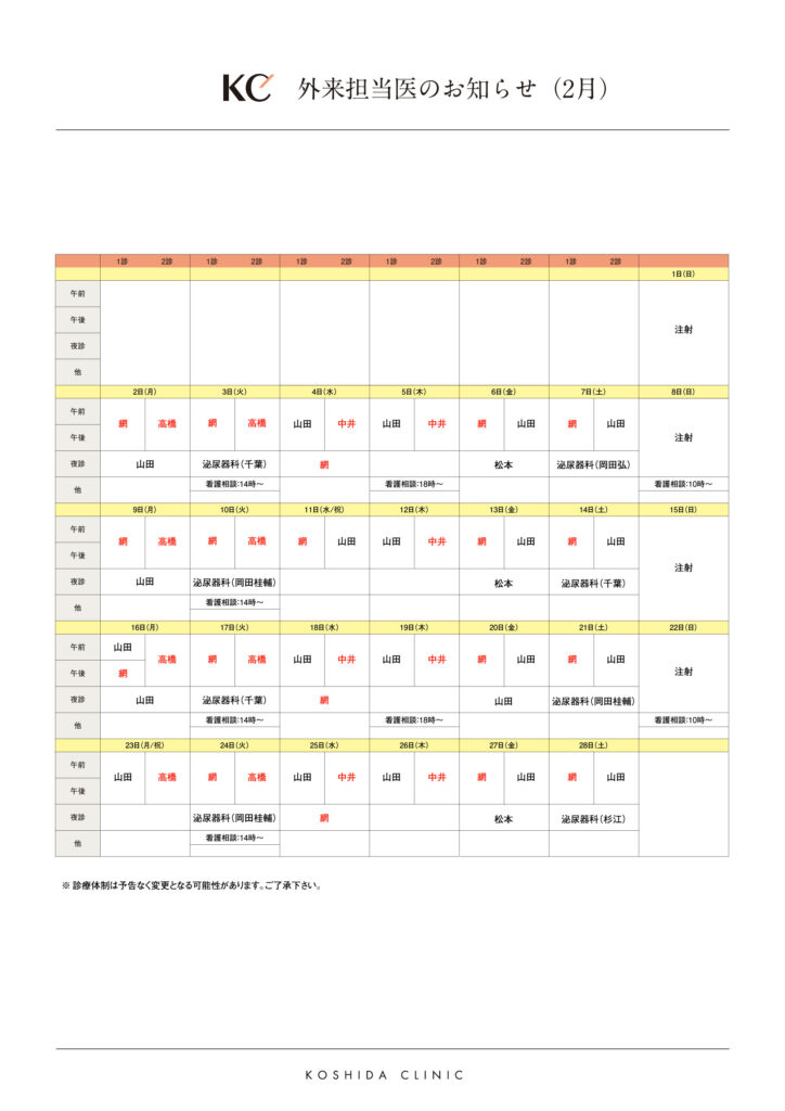 2月担当医表
